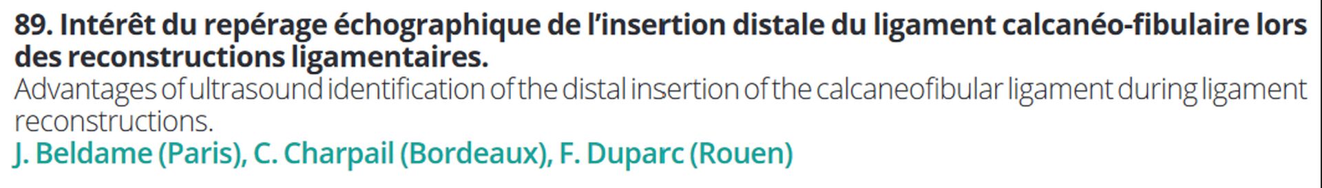 "L'Intérêt du repérage échographique de l’insertion distale du ligament calcanéo-fibulaire lors des reconstructions ligamentaires"