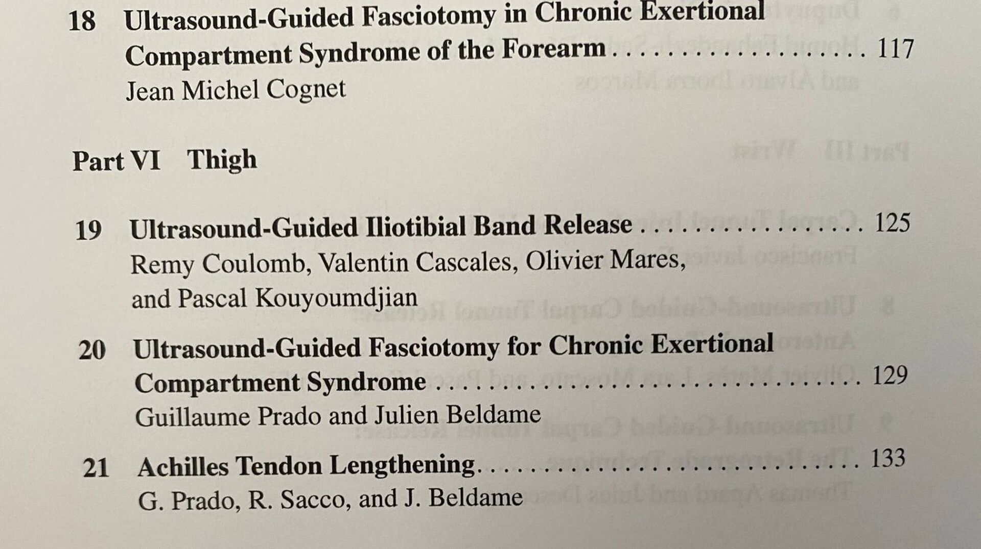Il figure parmi les auteurs du livre "Ultrasound-Guided Limb Surgery", publié aux éditions Springer, aux côtés d’Olivier Marès et Francisco Javier Ferreira.