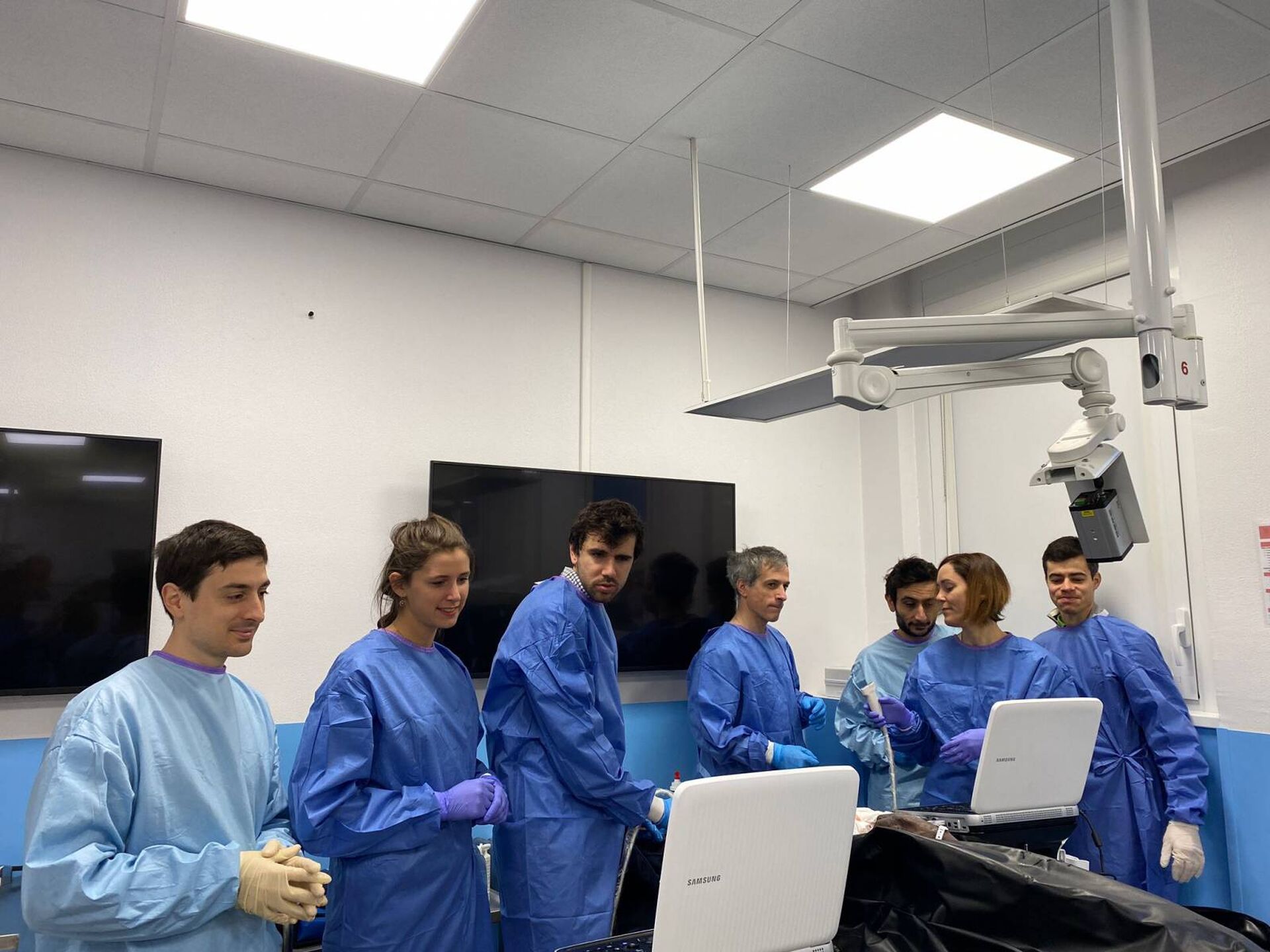Le Docteur Julien Beldame avec ses confrères le Docteur Lionel Benamran, le Docteur Nicolas Cellier et le Docteur Olivier Mares, tous chirurgiens orthopédistes, se sont retrouvés les 16 et 17 janvier derniers à Brest pour enseigner la pratique de l'écho-chirurgie orthopédique devant une vingtaine de chirurgiens des membres inférieurs.
