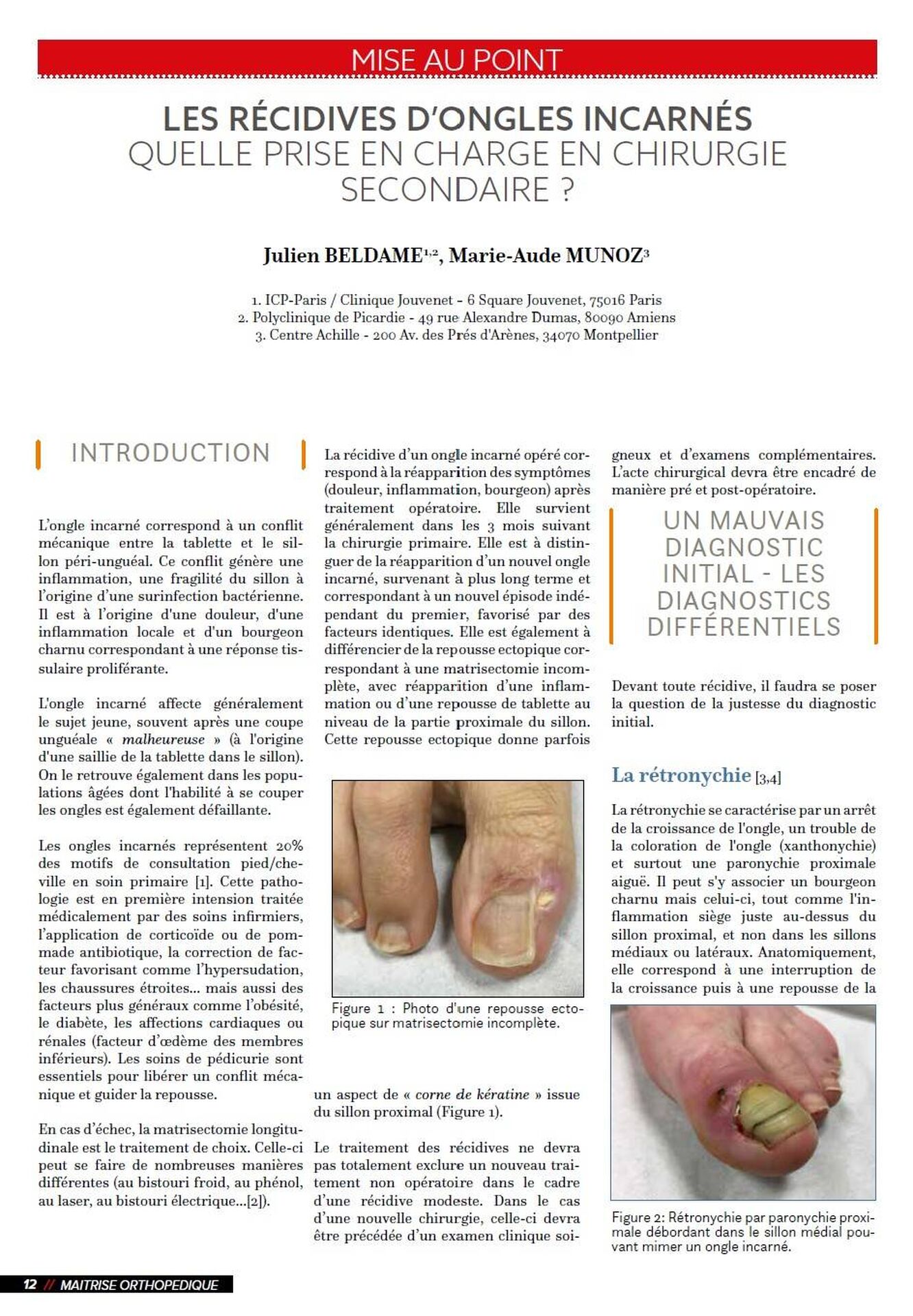 C'est la question à laquelle se sont intéressés les Docteurs Beldame et Munoz. Leur étude met en lumière le fait qu'une récidive peut survenir dans les 3 mois suivant une chirurgie initiale. Il est important de distinguer cette récidive d'un nouvel ongle incarné qui apparaîtrait plus tardivement et serait lié à d'autres facteurs.